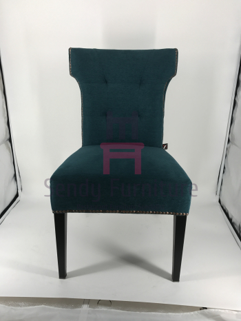 Features | A. Metal frame. Compare with the wood frame, metal frame is stronger and more durable, fits for all the commercial situation. B. Upholstered linen tufted buttons. C. Shinny brass nails surrouned the chair's back. |